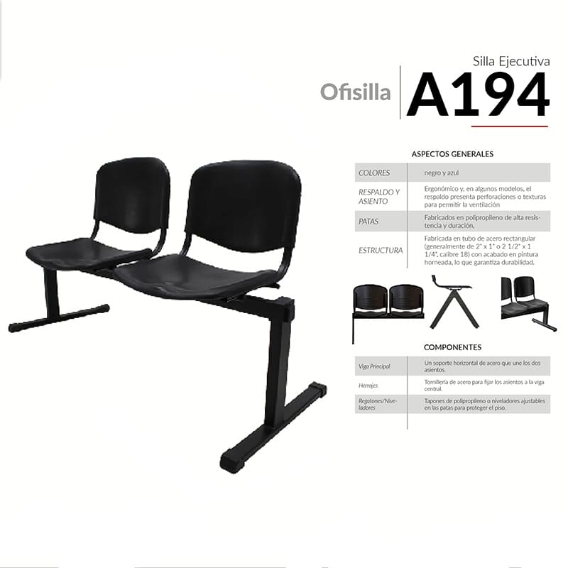 Respaldo y Asiento: Ergonómico y, en algunos modelos, el respaldo presenta perforaciones o texturas para permitir la ventilación.